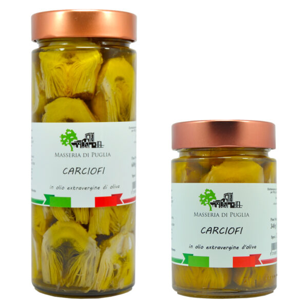 Carciofi a spicchi (70%), olio extravergine di oliva (14%),